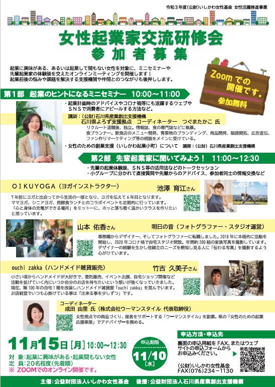 主催:石川県、女性キャリアサポート石川、マザーズハローワーク金沢