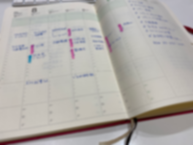 バーチカルの1週間のよこに、適度なフリースペースがあって、そこにその周の予定や、気になったこと、調べ物など何でもメモができるんです。
