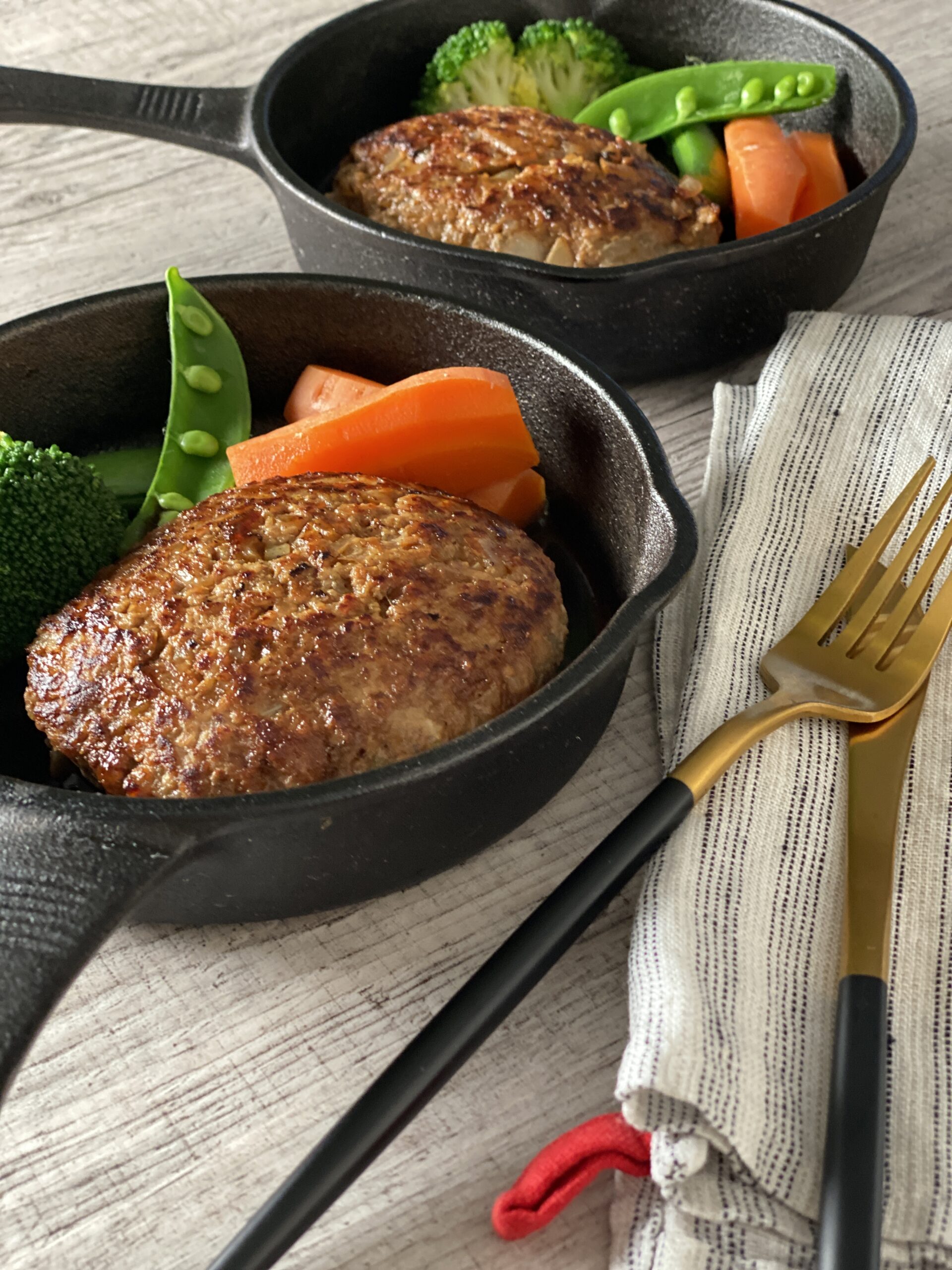 このハンバーグは、これからYouTubeで公開する予定の甘酒入りふわふわハンバーグです♪