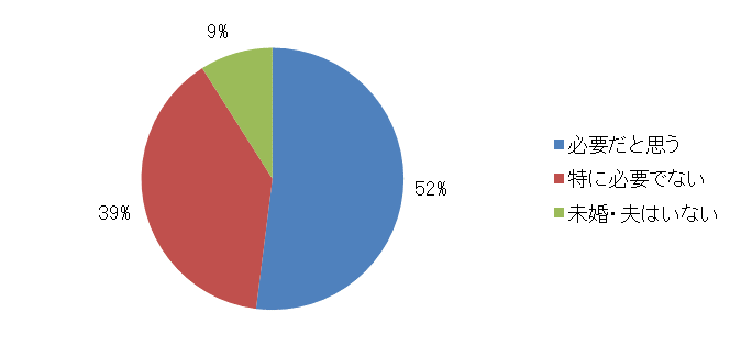 「必要だと思う」52%、「特に必要でない」39%。必要と感じている妻のほうがやや多い結果になりました。フリー回答では「ルールを作りすぎるとがんじがらめになってストレスがたまるので、基本は作らず臨機応変に対応している」との声がありました。