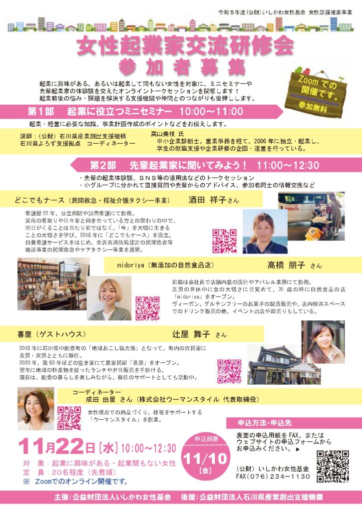 お申し込みは、公益財団法人いしかわ女性基金のウェブサイトまで!