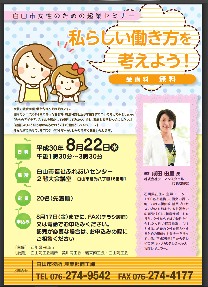 白山市で講演します