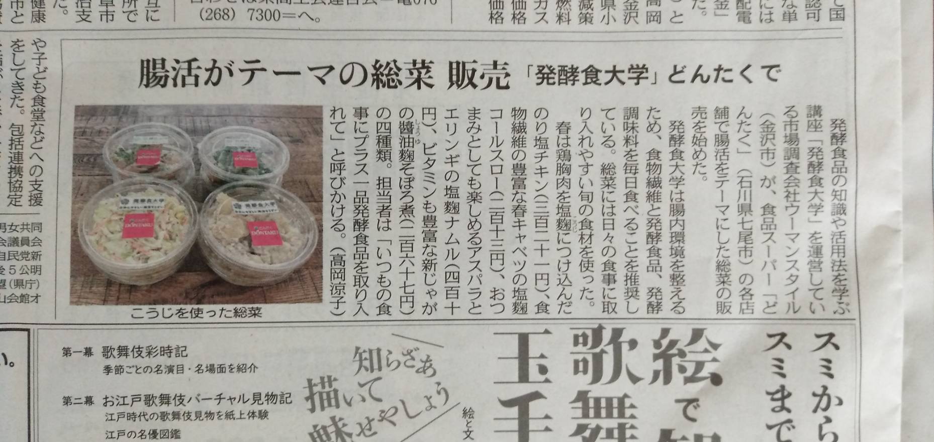 メディア掲載履歴 北陸中日新聞(2023年3月30日)朝刊に掲載されました スーパーマーケット「どんたく」で販売している発酵食大学のコラボ惣菜が北陸中日新聞に取り上げられました。 2023.03.30 メディア掲載履歴